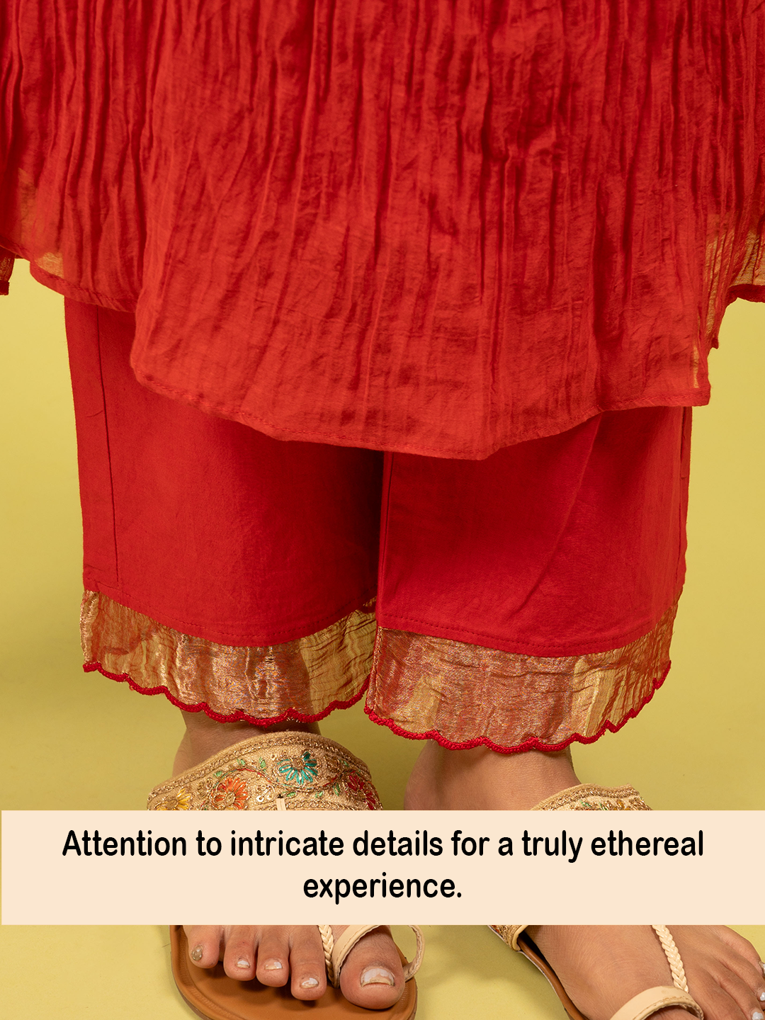 Indulge in the elegance of handwoven silk, adorned with exquisite embroidery on the kurta. This silk ensemble includes a contrast dupatta and a timeless lower, making it a lightweight, festive addition to your celebratory wardrobe."