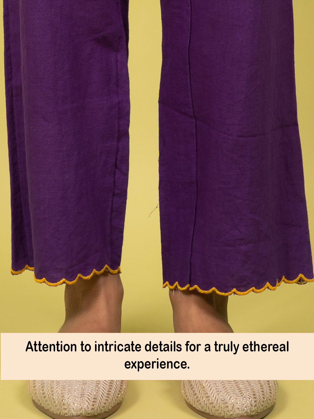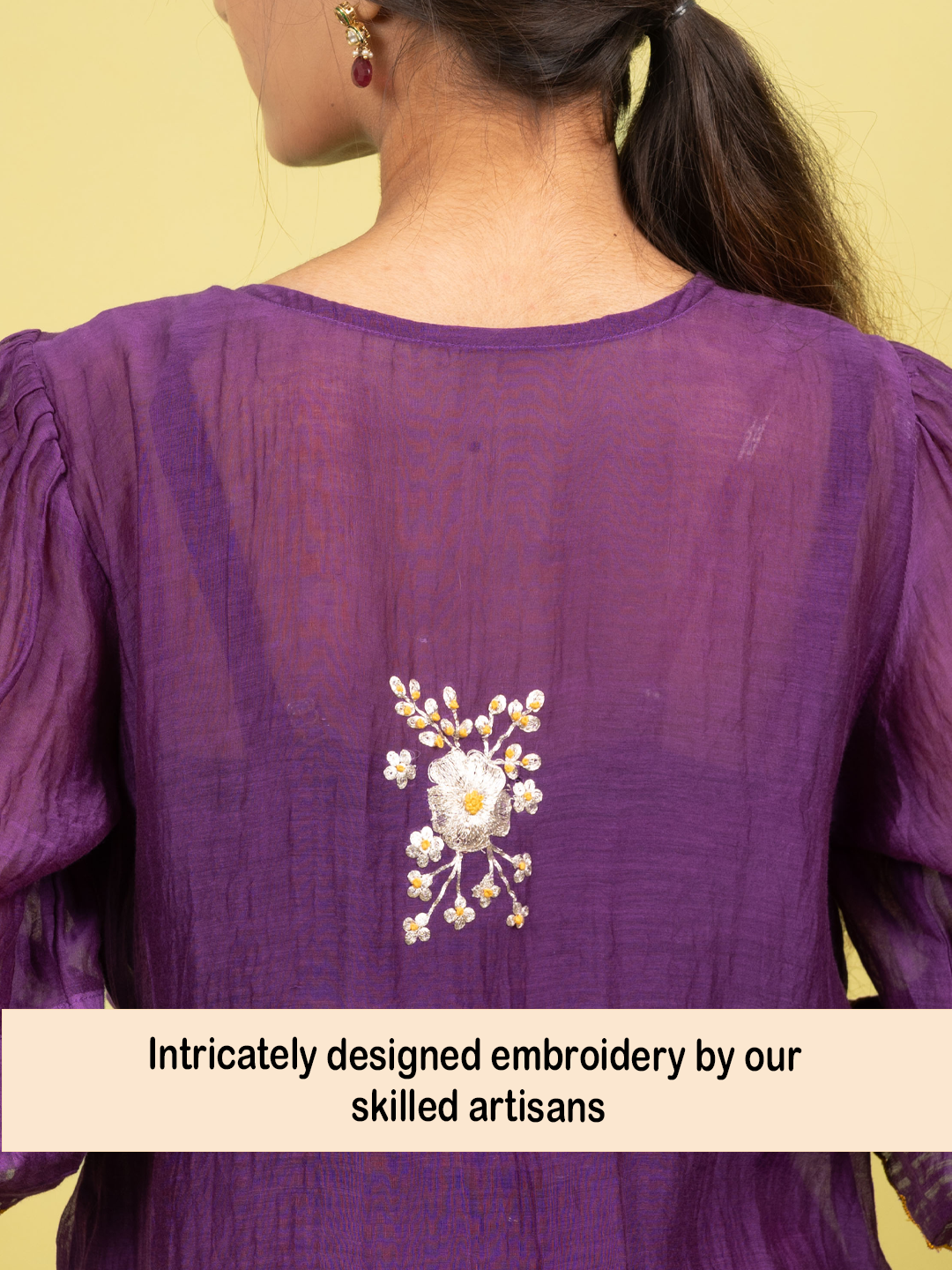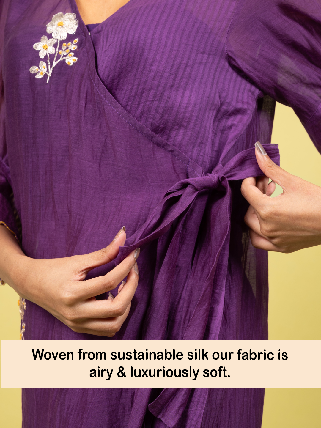Our Taara Co-ord set is a versatile piece in handwoven silk fabric and is paired with our organic Pants. It comes with delicate embroidery on the top.